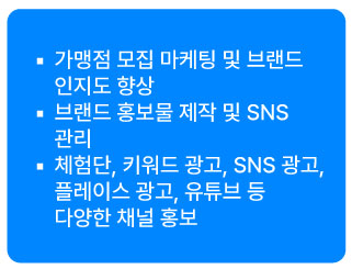 홈페이지 구축, 배달 등 플랫폼, 모바일 상품권 등의 마케팅까지
